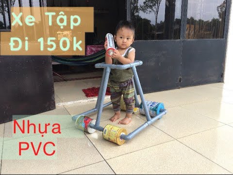 Là xe tự chế từ các vật dụng thân quen và dễ tìm, dễ làm như ống nhựa nước PV, vỏ hộp sữa,… Các bố, mẹ có thể tham khảo video làm xe cho bé tập đi bằng ống nhựa tại đây nhé!